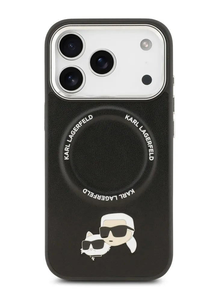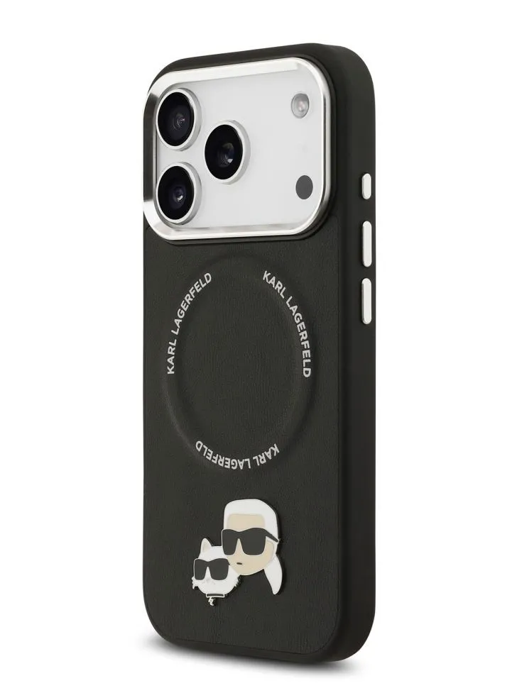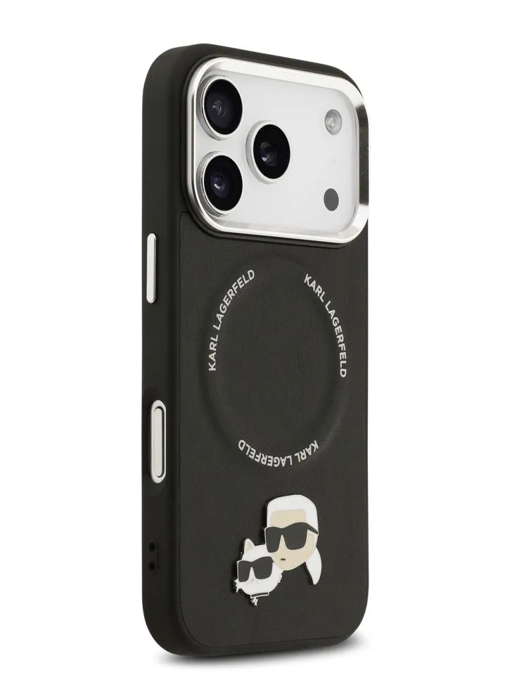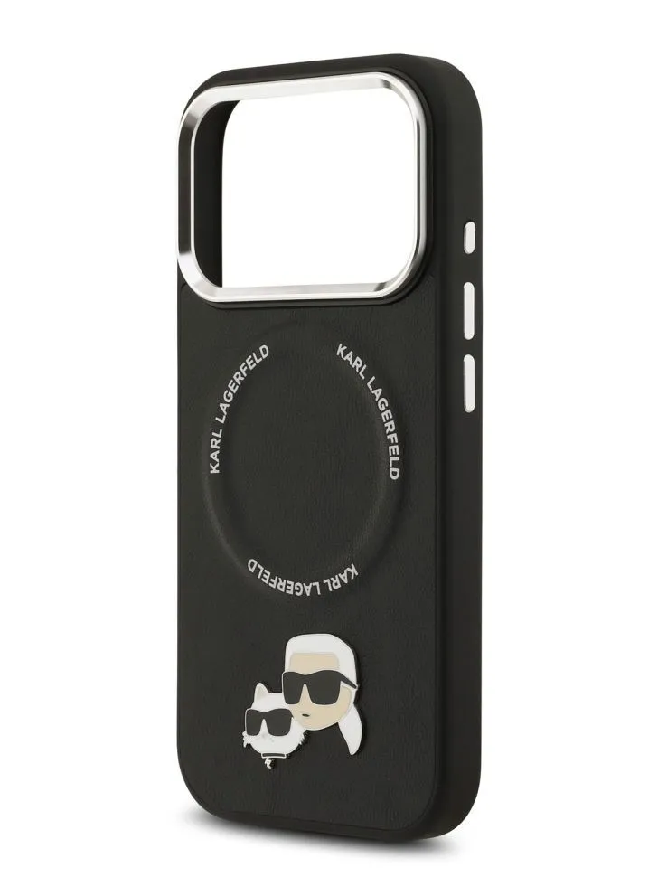 Lagerfeld для iPhone 17 Pro Max чехол PU NFT Karl & Choup heads Metal pin & Cam Hard Black (MagSafe)